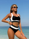 Este bikini con tirantes anchos y bloques de color ofrece estilo y comodidad en una sola prenda. Los tirantes anchos proporcionan un soporte seguro, mientras que el diseño en bloques de color realza tu figura con un toque moderno y vibrante. Perfecto para disfrutar del sol con confianza y libertad de movimiento.