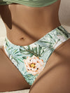 Conjunto de Bikini con Estampado de Plantas y Kimono Fruncido - 3 Piezas
